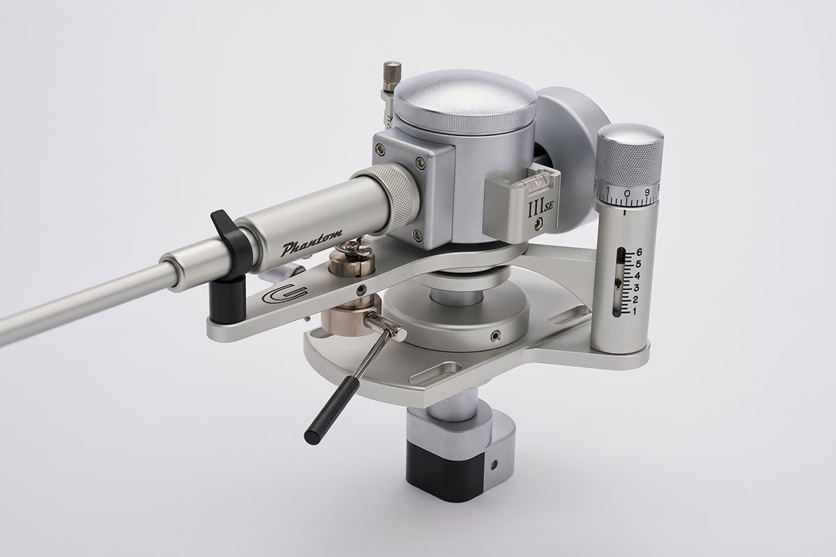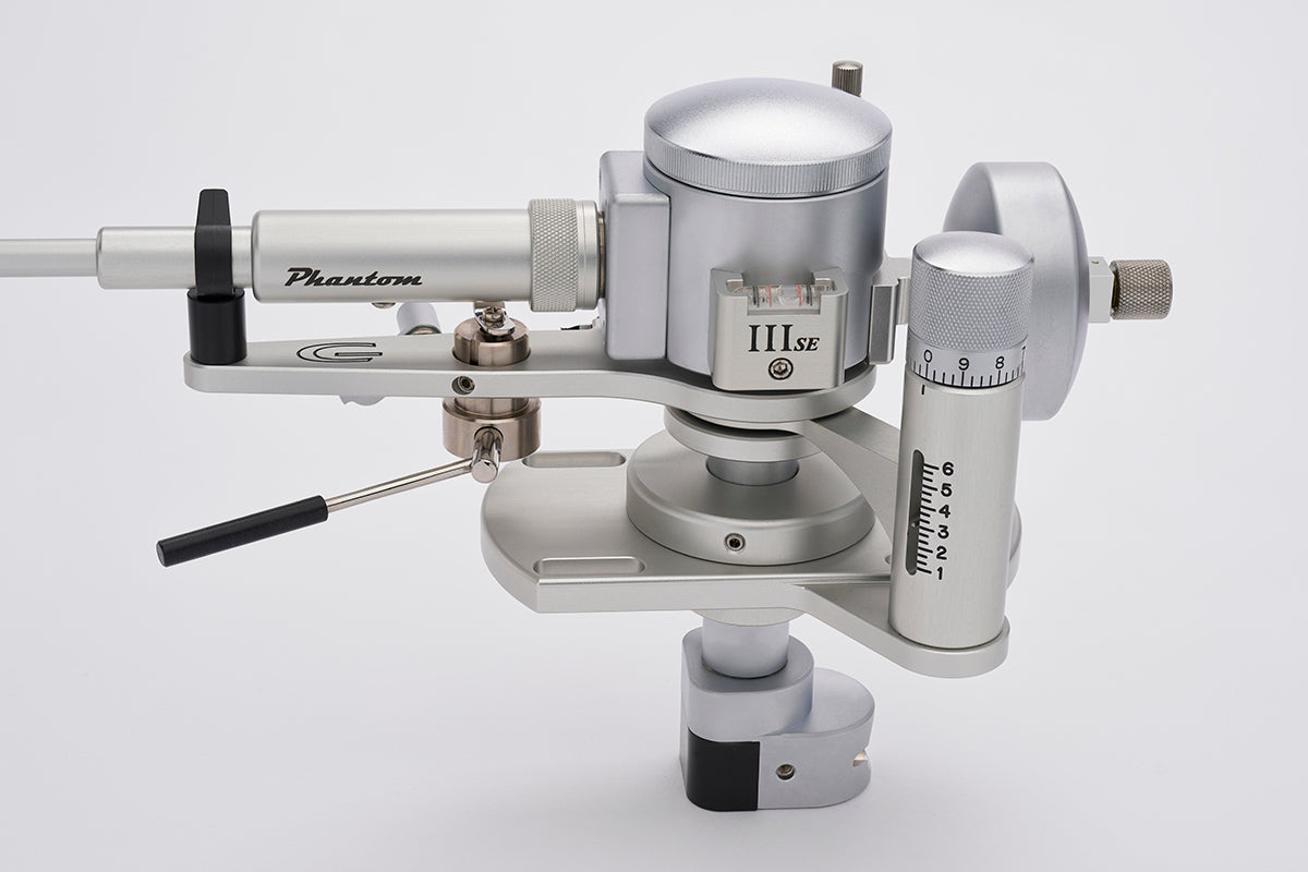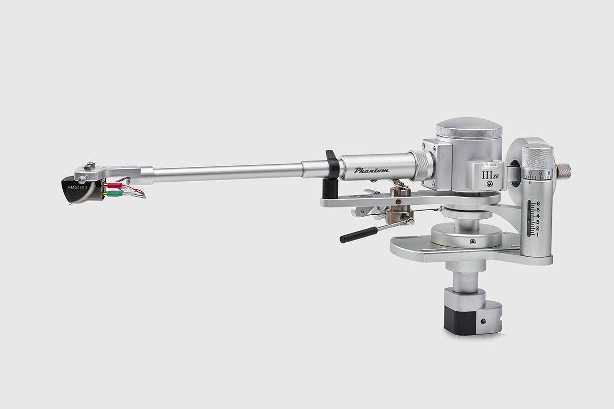 Unlike other designs where the counterweight/arm resonance can be in the audio range, and which can result in modulation of the playback signal, the counterweight of the Phantom III SE is decoupled at a low, subsonic resonant frequency; this results in cleaner and more dynamic bass extension, and smooth, detailed midrange, with extended, crystalline highs. All of this is achieved with practically no sonic signature of the arm itself, such as false base emphasis or bright highs, and instead is allowing the phono cartridge to work effortlessly in reproducing the music itself.