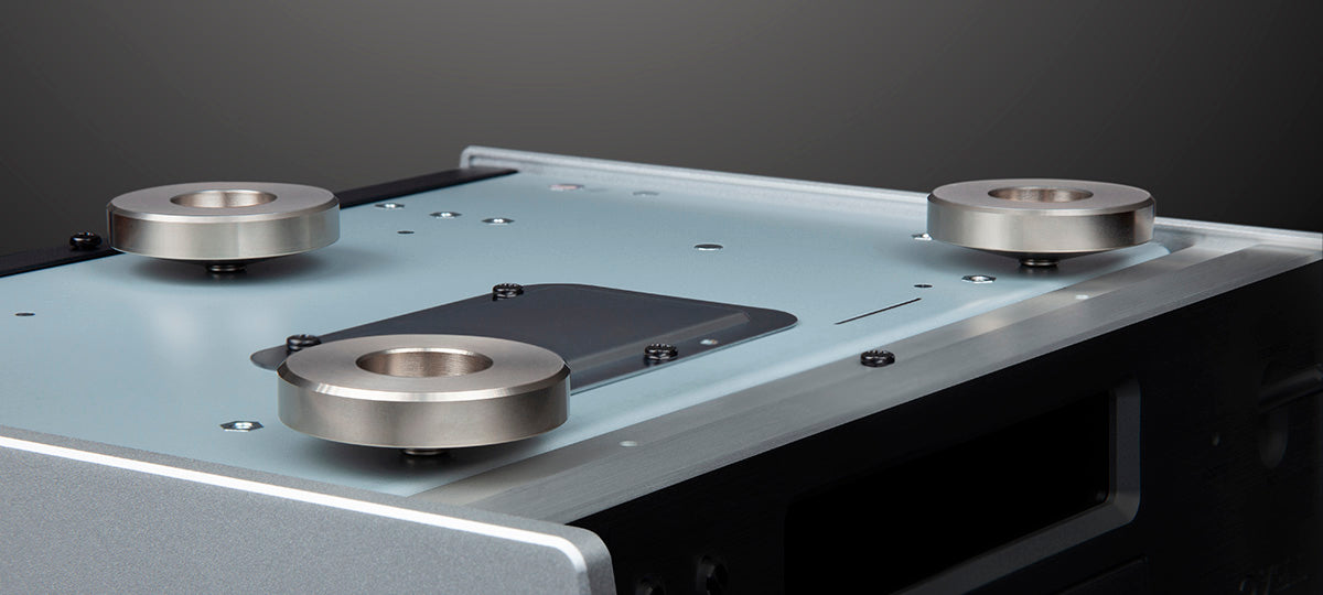 TEAC’s proprietary Stress-Less Isolation Foot is precision-machined from solid steel. By allowing slight movement at the joint between the bottom plate and the foot, it achieves precise imaging and a rich, natural sound. The 3-point support system also ensures a stable installation, unaffected by even the slightest distortion in the floor surface.